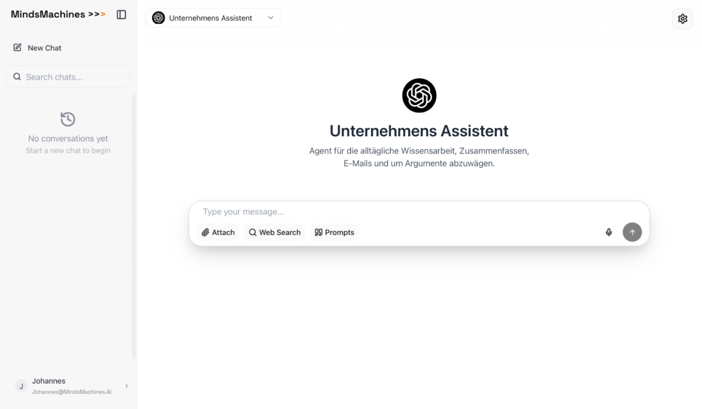 OneMachine verbindet ERP, CRM, Datenbanken, Cloud-Services und Geschäftsprozesse nahtlos mit führenden AI-Modellen. Alle Komponenten werden so integriert, dass Ihre Daten in Ihrer Infrastruktur bleiben >>>  DSGVO- und AI-Act-konform, ohne Datenschutzrisiken, Vendor Lock-in oder IT-Chaos. Unternehmen wählen die Funktionen, MindsMachines realisieren die technische Integration, vom AI-Assistenten über AI-Agenten bis zu Agentic AI.